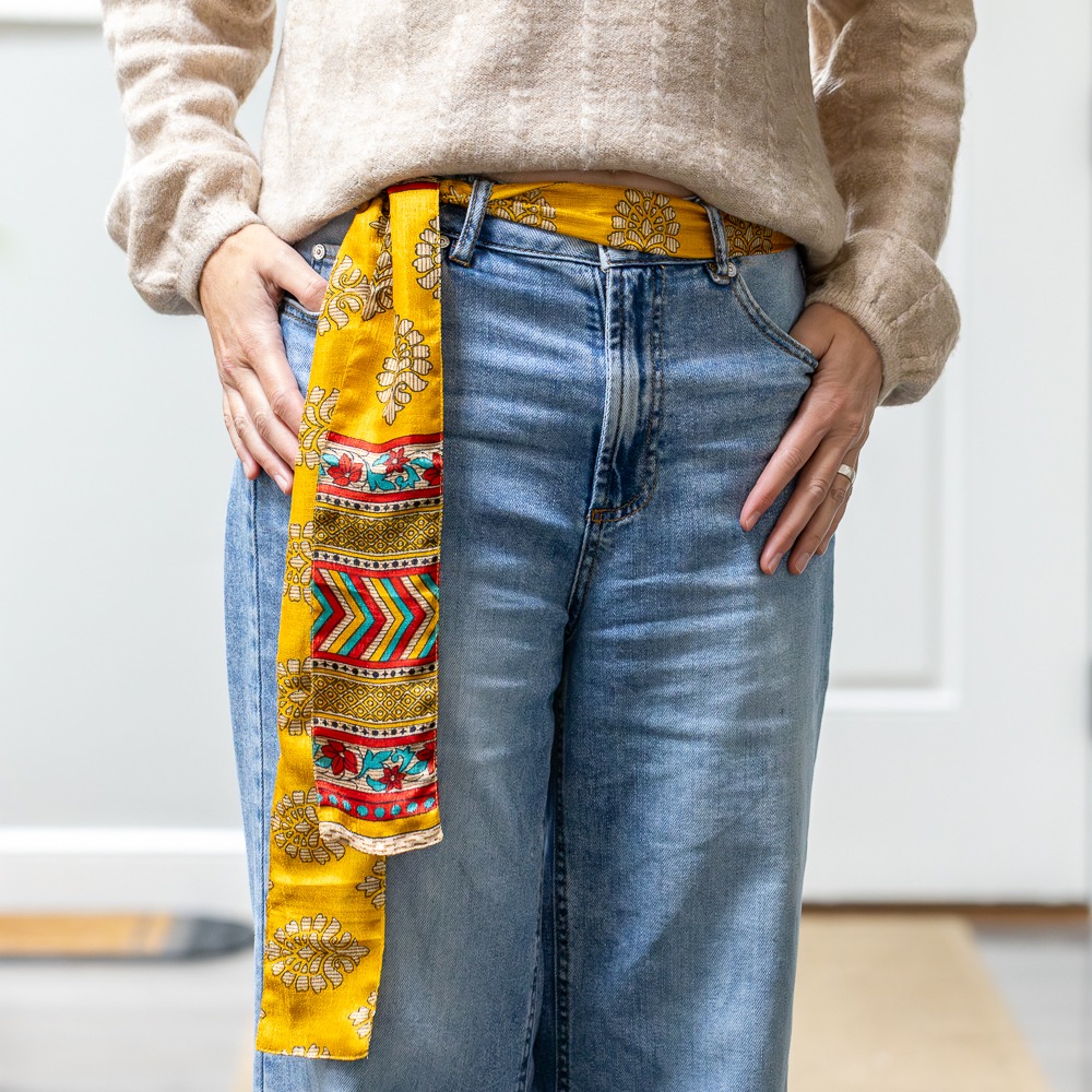 *Vintage Sari Skinny Scarf – Yellow Pattern – New for 2025
