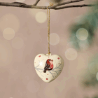 Handcrafted in India, this delicately shaped and painted by hand, this cream-colored paper mâché heart features a vibrant red cardinal perched on a soft gray branch. A golden hanger adds a festive finish, making it perfect for your tree, gift wrapping or year-round display. Bring a touch of heartfelt charm to your holiday décor with this delightful symbol of love, hope and remembrance!