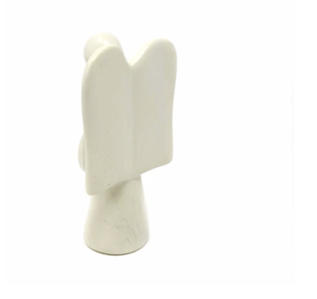 Hand-carved from a single piece of Kisii soapstone by African artisans, this angel sculpture creates an air of peace and tranquility. A wonderful gift to extend comfort to someone in need. Mining the soapstone from surface hills is a labor-intensive process, using little to no machinery. Laborers works with shovels, picks, axes and machetes to carve out large soapstone chucks, which are then carved into beautiful art.