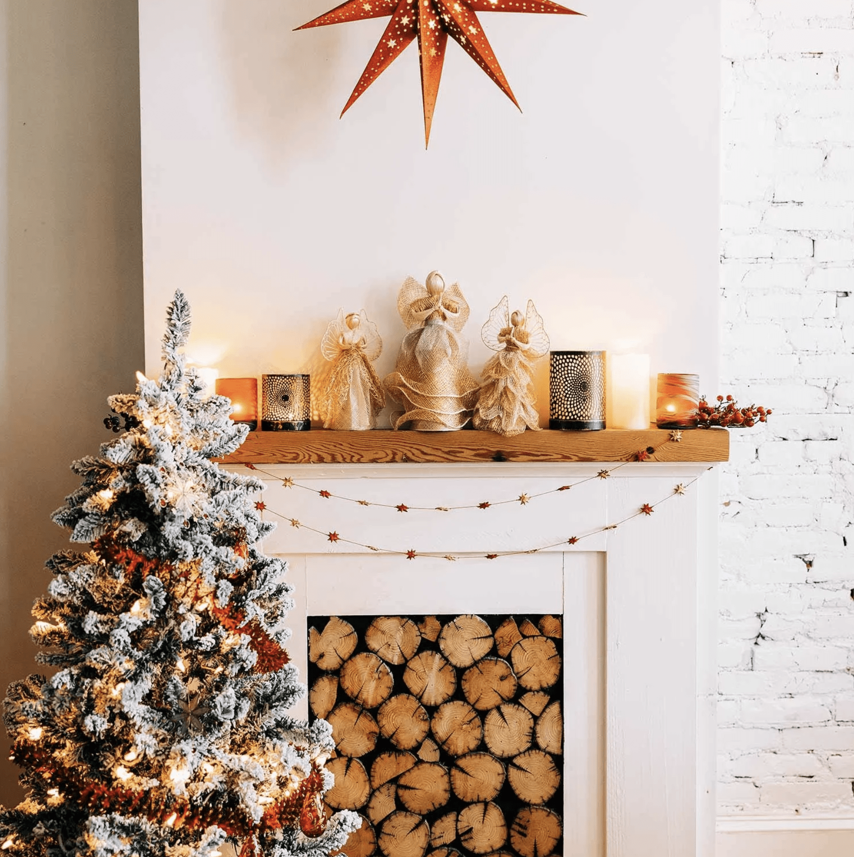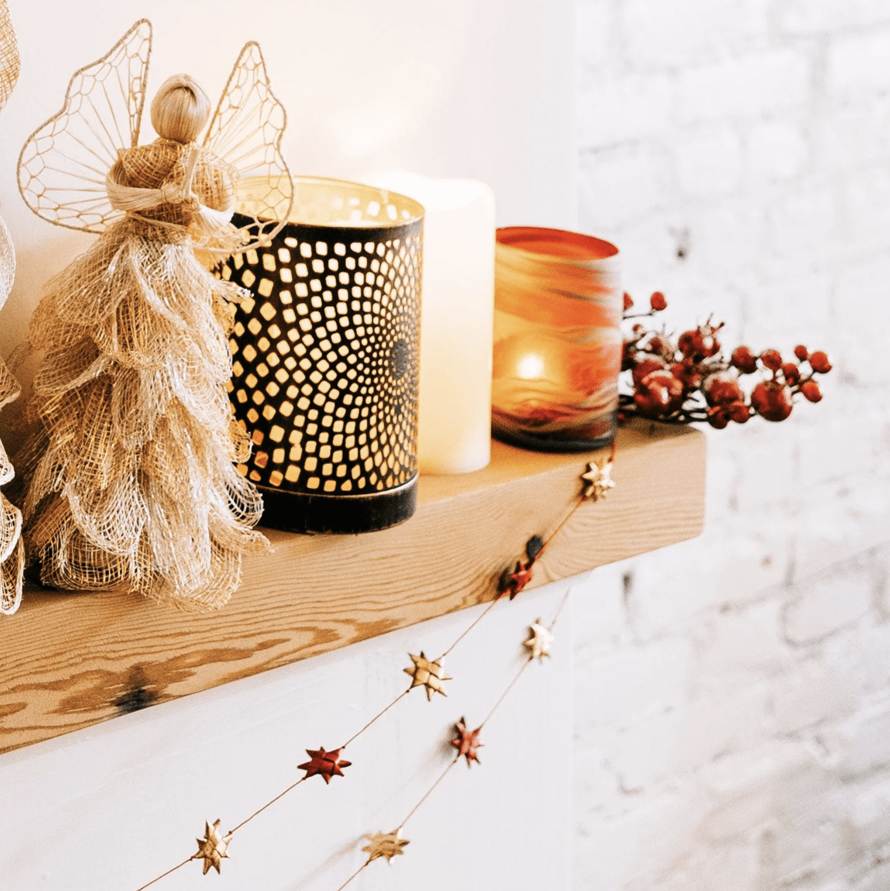 Handcrafted in Bangladesh, palm leaves are folded tidily into stars to make up this holiday garland. Painted in reds and golds to spread cheer for this special time of year.