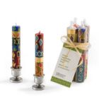 Hand poured and hand painted in South Africa, these Judaica Shabbat candles have a beautiful glow from within as they burn. They are made with the highest quality natural paraffin wax with a 100% cotton wick and are unscented, smokeless, and free from added toxins. 4 hour burn time.